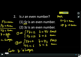 2. Is z an even number? (1) 5z is an even number. (2) 3z is an even number.
