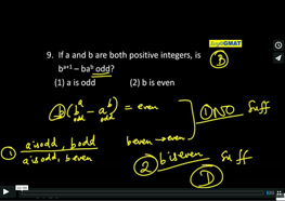 9. If a and b are both positive integers, is ba+1 – bab odd? (1) a is odd (2) b is even