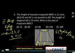4. The height of isosceles trapezoid ABDC is 12 units. The length of diagonal AD is 15 units. What is the area of trapezoid ABDC in FIGURE 2?